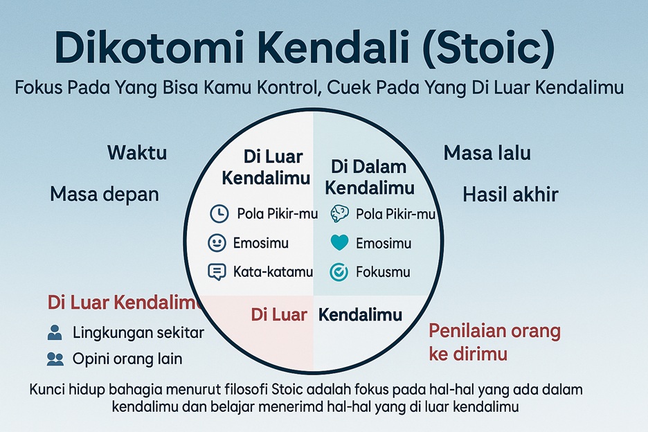 Bayangkan hidupmu seperti bermain game. Dalam game, ada hal-hal yang bisa kamu kontrol (seperti cara kamu bermain, strategi yang kamu pilih), dan ada hal-hal yang tidak